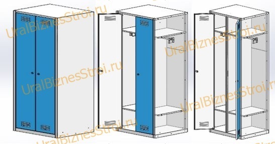 • Каждая секция оснащается полкой для головных уборов,перекладиной, 4 крючками для одежды. Все шкафы имеют возможность крепления между собой в ряд.