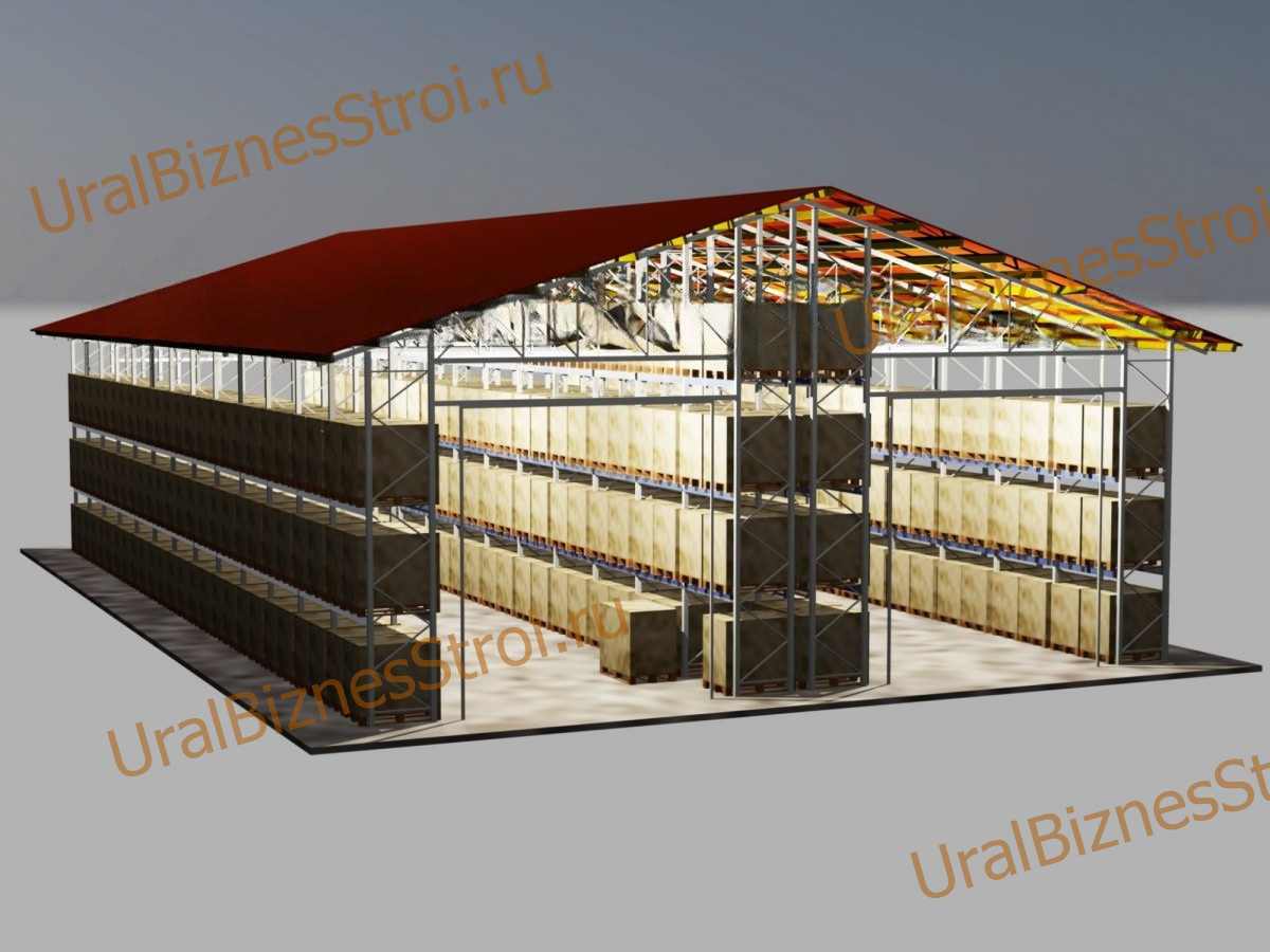 Быстровозводимый (Обшитый) склад 12000*25000*8000мм 3 яруса