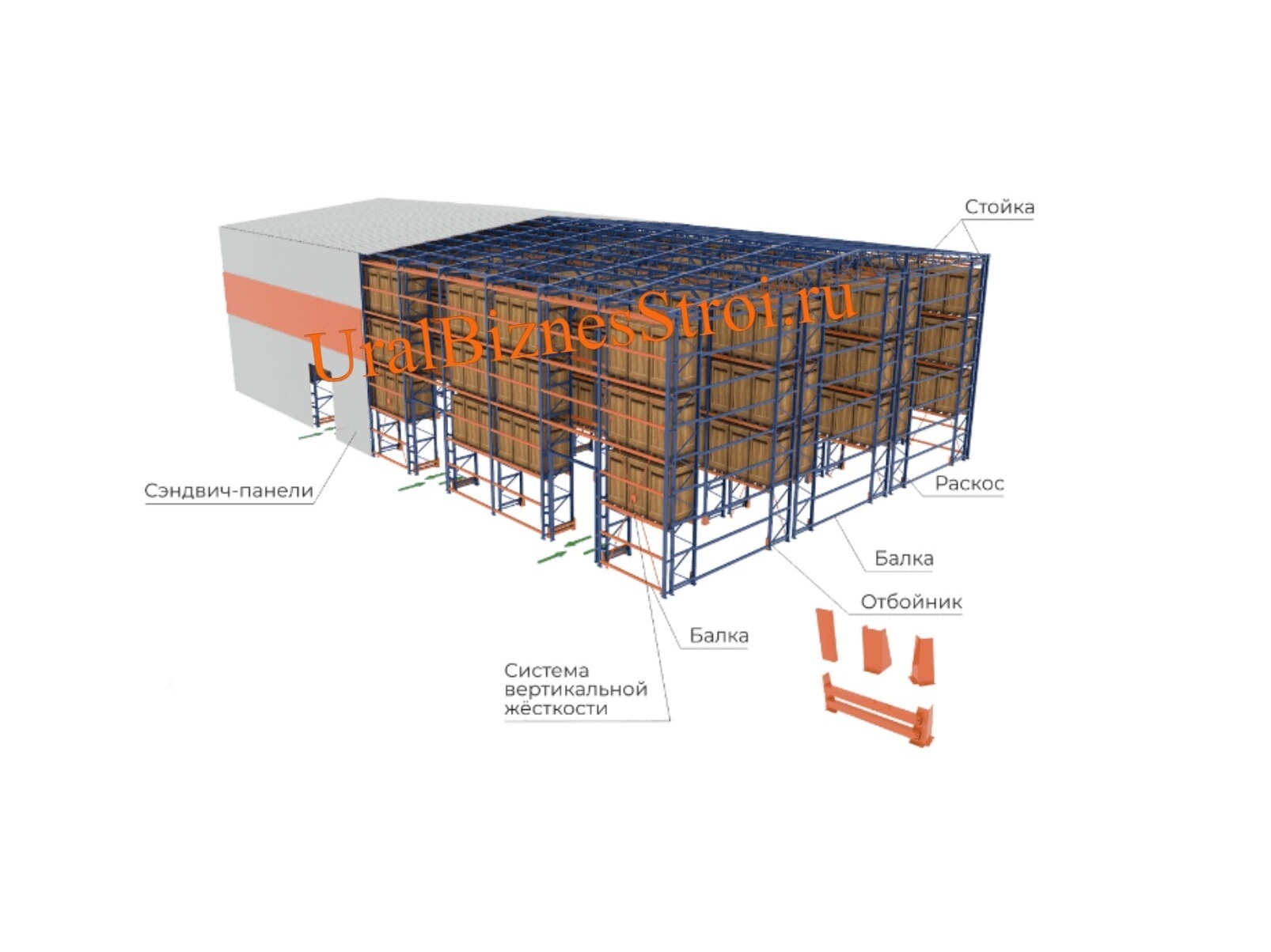 Быстровозводимый склад 18000*28000*10000 мм 4 яруса