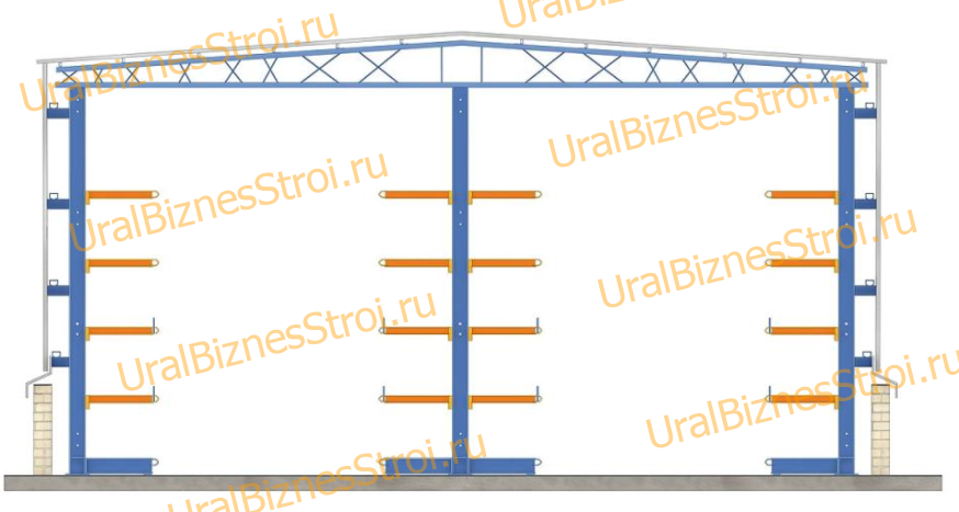 Самонесущий консольный склад 12000*15000*8000мм 7 консолей под наклонные фермы.
