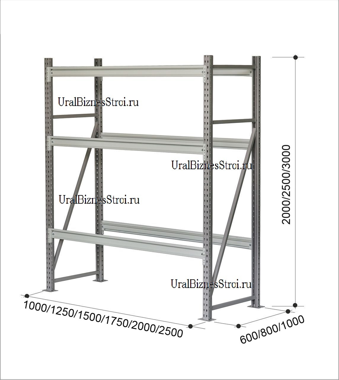 Грузовой стеллаж 2040*800*1250 3 яруса навесных без настила