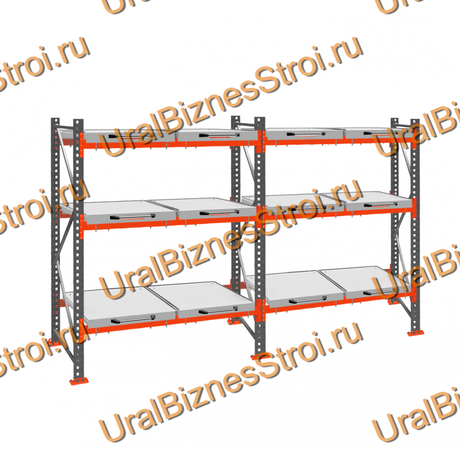 Стеллаж с выкатными платформами 2500*3600*1050 3 яруса 12 платформ