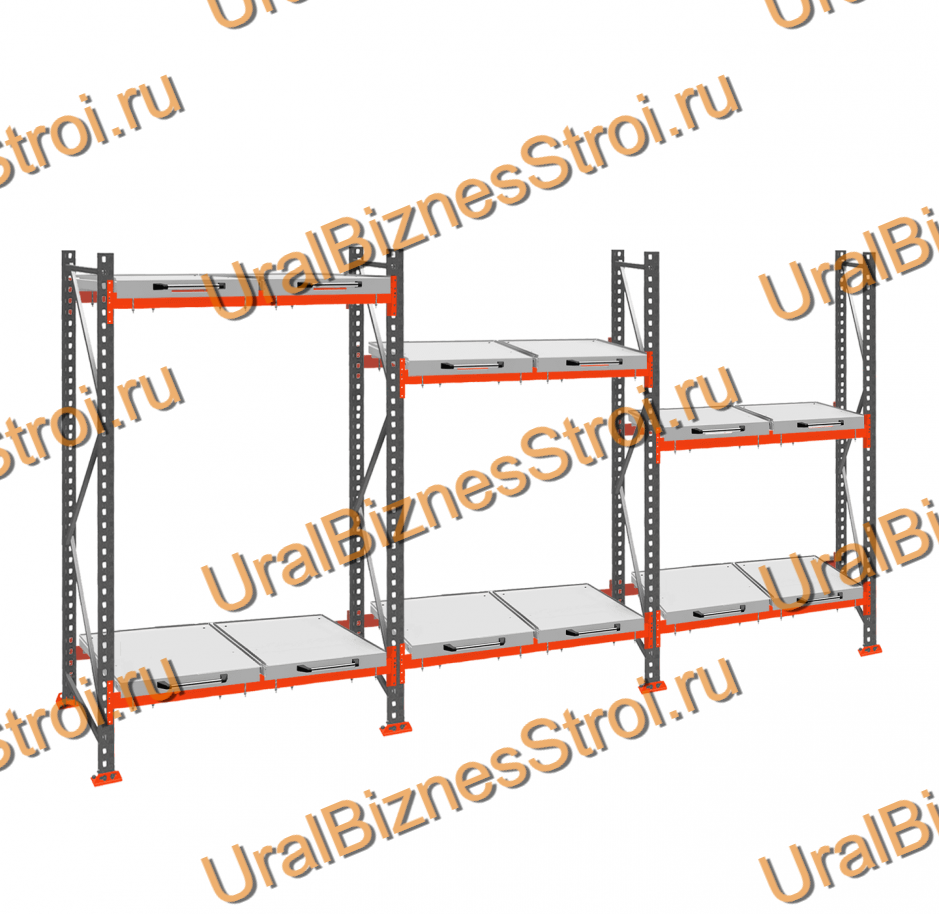 Стеллаж с выкатными платформами 2500*5400*1050 2 яруса 12 платформ