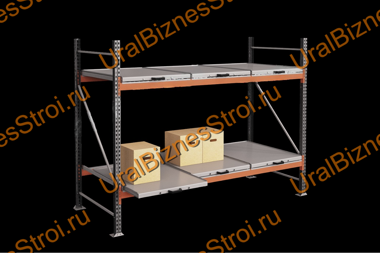 Стеллаж с выкатными платформами 3000*2700*1050 2 яруса 6 платформ