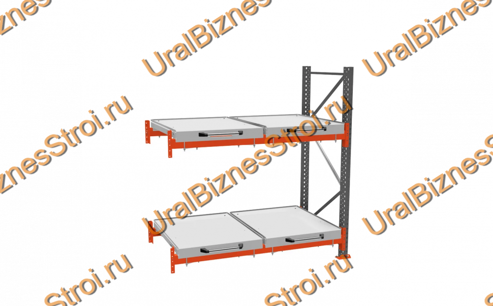 Стеллаж с выкатными платформами дополнительная секция 2000*1800*1050 2 яруса 4 платформы