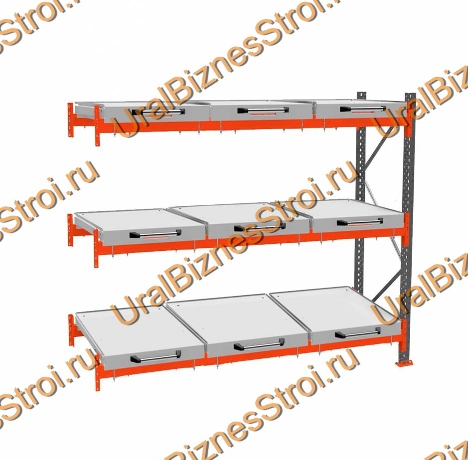 Стеллаж с выкатными платформами дополнительная секция 2000*2700*1050 3 яруса 9 платформ