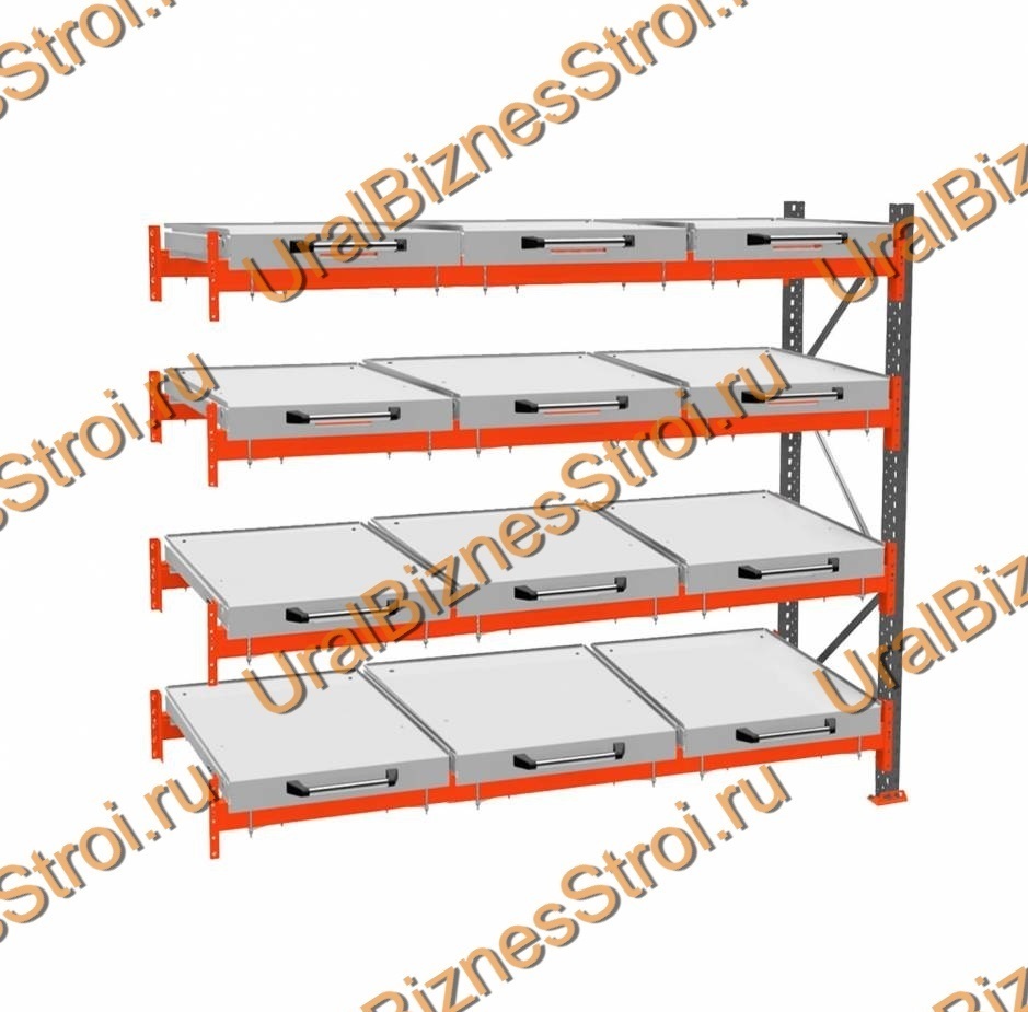 Стеллаж с выкатными платформами дополнительная секция 2000*2700*1050 4 яруса 12 платформ
