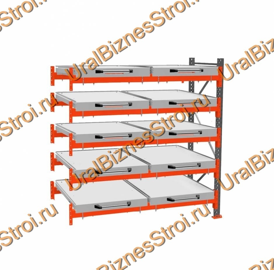Стеллаж с выкатными платформами дополнительная секция 2500*1800*1050 5 ярусов 10 платформ