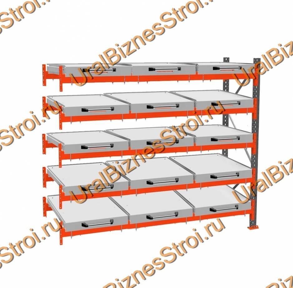 Стеллаж с выкатными платформами дополнительная секция 3000*2700*1050 5 ярусов 15 платформ