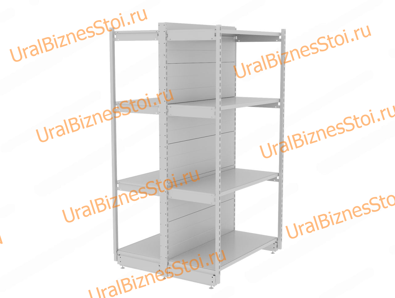 Торговый островной стеллаж (Усиленный с передней стойкой) 1450*300*1200 4 полки