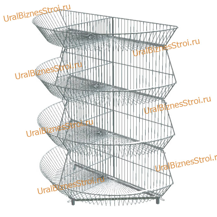 Каталог Торговое оборудование для магазинов Проволочная продукция (Корзины/стойки) Горка из корзин полукруглая (КОШ) 3+1 облегченная
